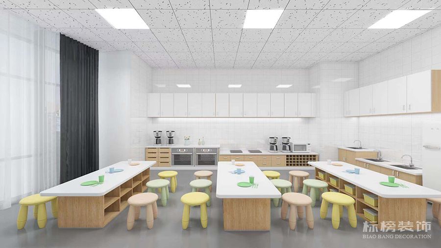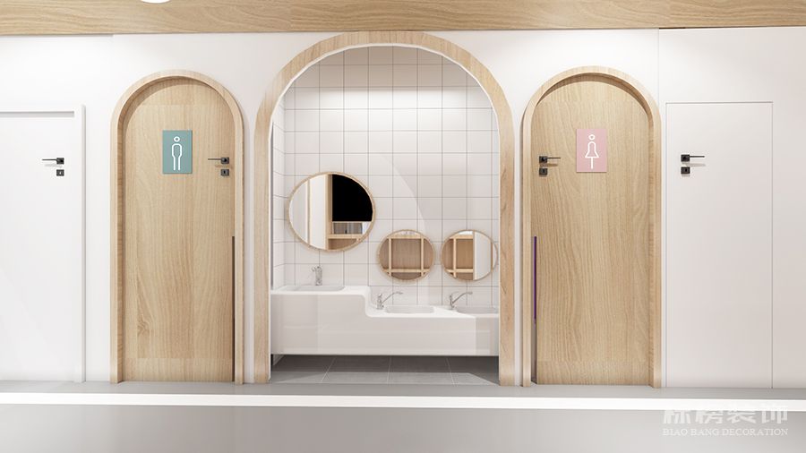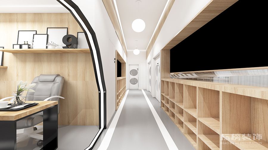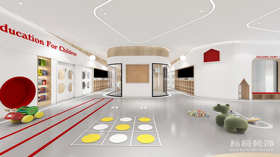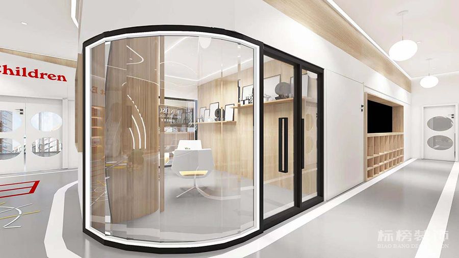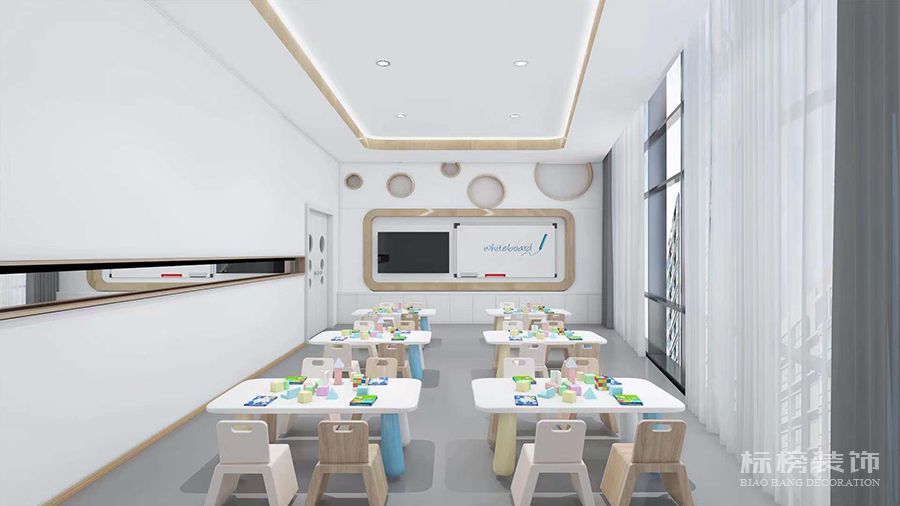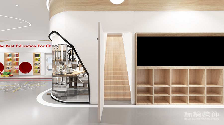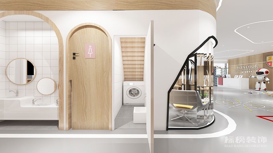 整体为比较纯净的白色和松木色为主,地板则选用灰色耐脏的色号,合理的色彩搭配再加上适合的空间结构为老师学生带来欢快的环境萦绕,同时使家长在进入机构时不会觉得过于拥挤杂乱,给家长留下优秀的第一映像。